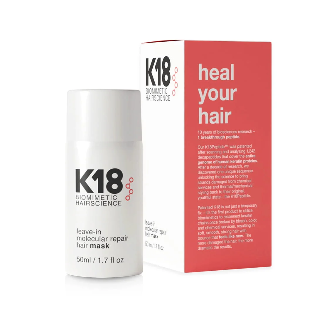 Travelling deeper into the inner layers of hair than traditional repair products, our revolutionary patented K18Peptide™ is just the right size and makeup to fit in and reconnect broken keratin chains, renewing hair with strength, softness, smoothness, and bounce. You can feel and see the difference with the first use.